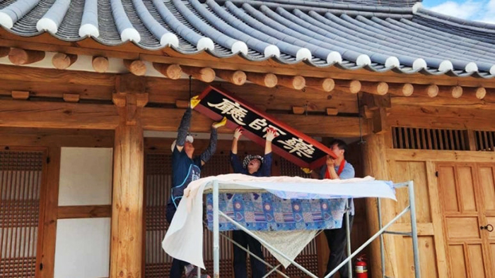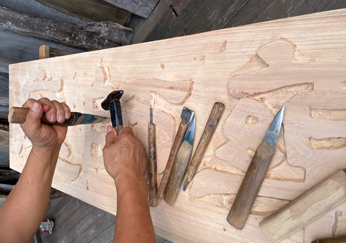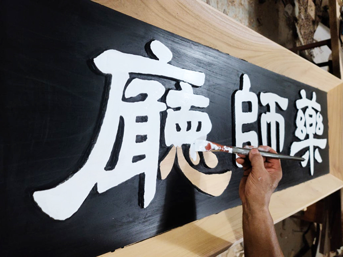 저는 목조각뿐 아니라 서각과 가구 제작도 동시에 배웠거든요. 서각은 유명 서예가들의 작품을 받아서 목재에 새겨 판매하는 방식으로 이뤄졌는데, 그게 발전해서 2000년도부터는 부산 지역의 문화재 현판 작업을 많이 맡았어요. 소헌 정도준 선생과 초정 권창륜, 구당 여원구 선생 같은 당대 서예 거장들의 필체를 7년간 자연 건조한 금강송에 새겨 넣는 정밀한 작업도 했고요.