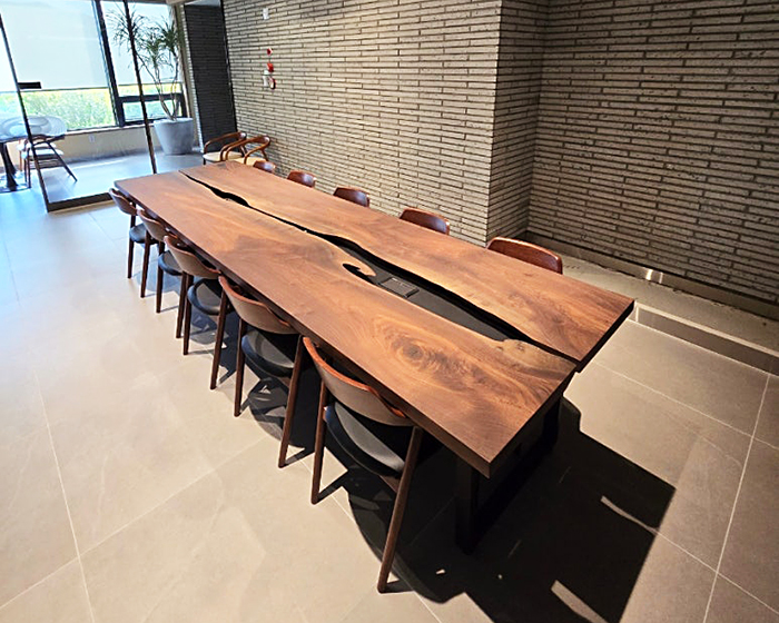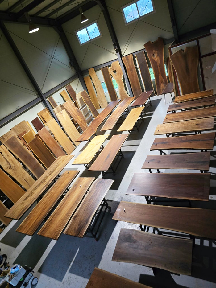 A4. 처음에는 우드슬랩이라는 명칭도 없었어요. 저는 그걸 ‘절제된 자연주의’라는 표현을 써서 만들었어요. 카페풍 인테리어가 유행하면서 통원목 테이블 수요도 빠르게 늘었고, 자연스럽게 그 시장에 올라탄 셈이죠. 너무 바빠서 거의 2~3년 동안은 날짜도 모르고 요일도 모르고 살았어요. 오후 4~5시에 점심을 먹고 밤늦게까지 일했어요. 그런데 딱 코로나 전까지만 그랬어요.