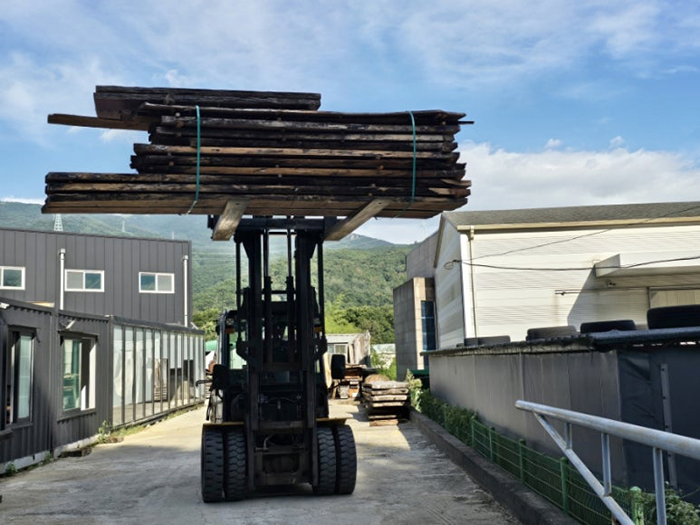 그다음에 제 공장에는 완성품이 하나도 없어요. 우드슬랩들은 1차 가공 상태로 전시해 둡니다. 손님이 선택하면 그때 다시 가공해서 맞춤 제작으로 배송하는 시스템을 고수하고 있어요. 보통 업체들은 건조 직후 바로 대패작업을 하고 오일마감해서 납품하지만, 저는 건조실에서 나온 원목을 일정 기간 자연 상태로 둬요. 온습도 변화에 따른 나무의 추가적인 변형을 일부러 한 번 더 겪게 하는 거죠. 이런 과정을 거치면 온습도 변화가 잦은 아파트 환경에서도 원목이 변형되지 않고 버티거든요.