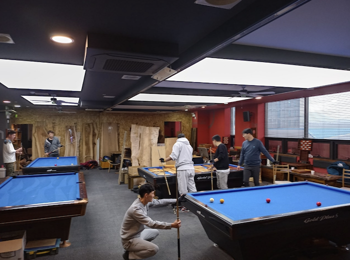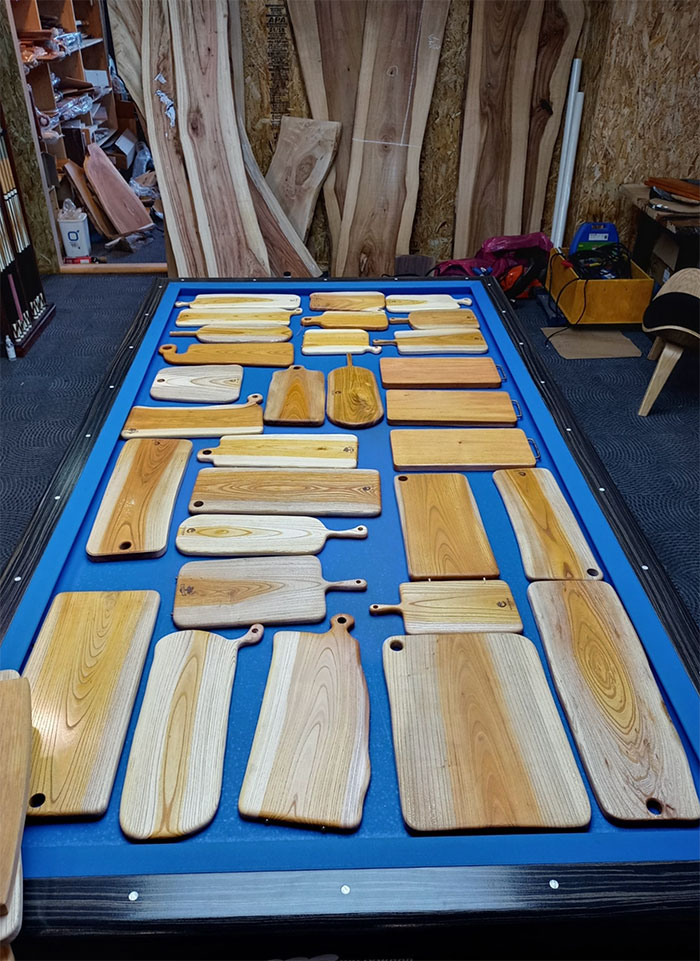 처음에는 충북혁신도시에 상가를 얻어 당구장을 운영했어요. 그런데 몇 년 지나지 않아 코로나 사태가 터지고, 이어 러우전쟁까지 겹치며 장사도 어려워지기 시작했습니다. 그러던 중, 손으로 뭔가를 만지작거리는 것을 좋아하는 제게 ‘목공’이라는 것이 다가온 거에요. 죽산목공소 행사에서 도마재부터 구매해 처음으로 만들어봤어요. 샌딩기도 사고 집진기도 샀지요. 어느새 당구장 한편을 막고 밴드쏘, 자동대패까지 들이게 되었어요.