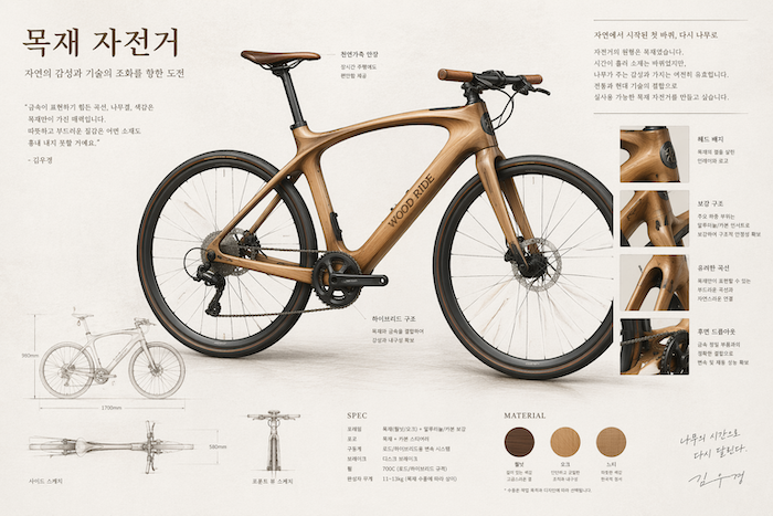 김우경 씨가 언젠가 직접 만들고 싶은 목재 자전거를 AI 이미지로 구현했다.