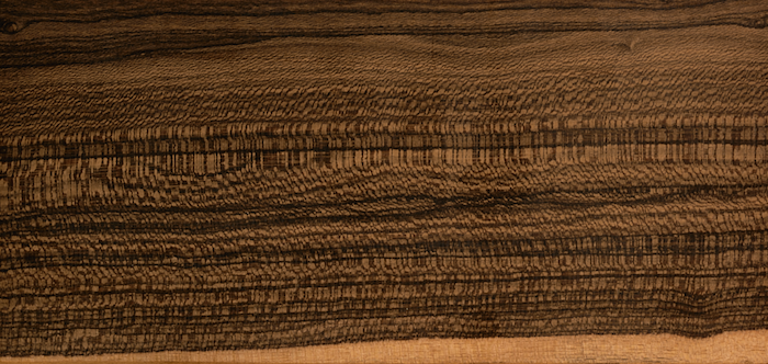 목리/나무갗: 목리는 무늬를 형성하는 중요한 요인으로, 교착목리와 통직목리가 함께 나타난다. 나무갗은 중간 정도로 균질하며, 천연적인 기름기를 머금고 있어 광택이 매우 우수하다.