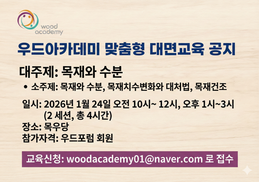 우드 아카데미 목재교육 수강생을 모집합니다.