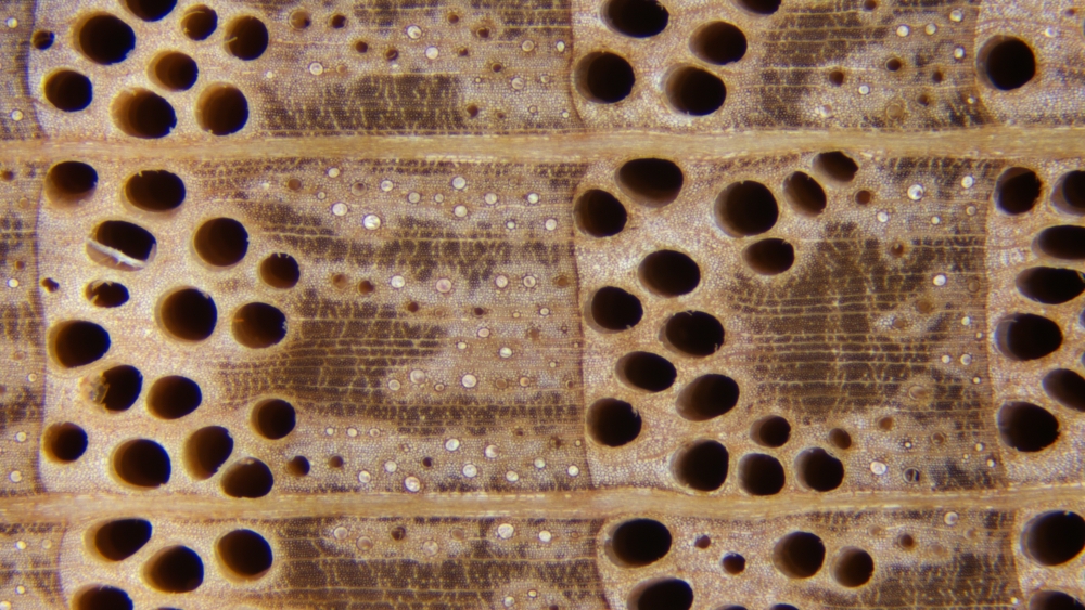 환공재, 조재관공은 2-4열, 작은 만재관공은 방사상 배열을 함. 타일로시스 없음. 생장륜계는 명확, 광방사조직 존재, 축방향유조직은 독립유조직으로 단접선상