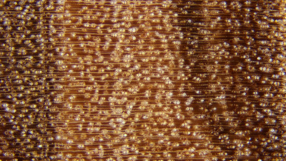 산공재. 관공의 직경은 작은편으로 빈도가 매우 큼. 고립 및 2-3개 또는 4개 이상 방사복합. 황색 심재 침전물 존재. 생장륜계는 명확 또는 불명확. 방사조직의 폭은 좁아 확대경 없이는 관찰 불가. 간격은 보통이거나 매우 좁음. 축방향 유조직은 확대경으로도 관찰이 어려우나 현미경적으로 주위상.