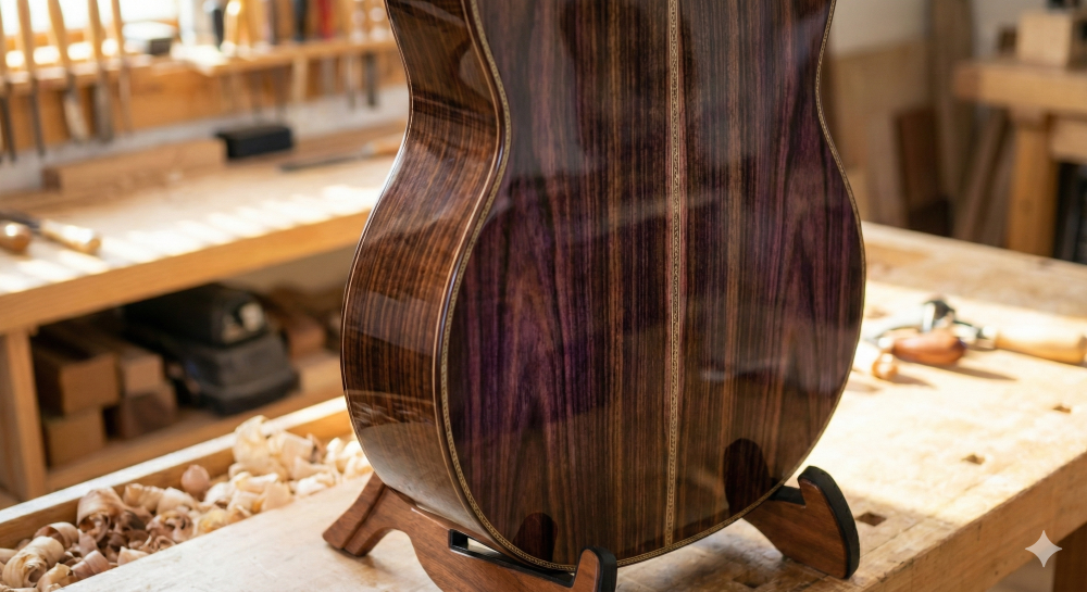 동인도 로즈우드는 어쿠스틱 기타의 측·후판(Side & Back) 재료로 가장 표준적이면서도 훌륭한 목재로 평가받고 있음.
