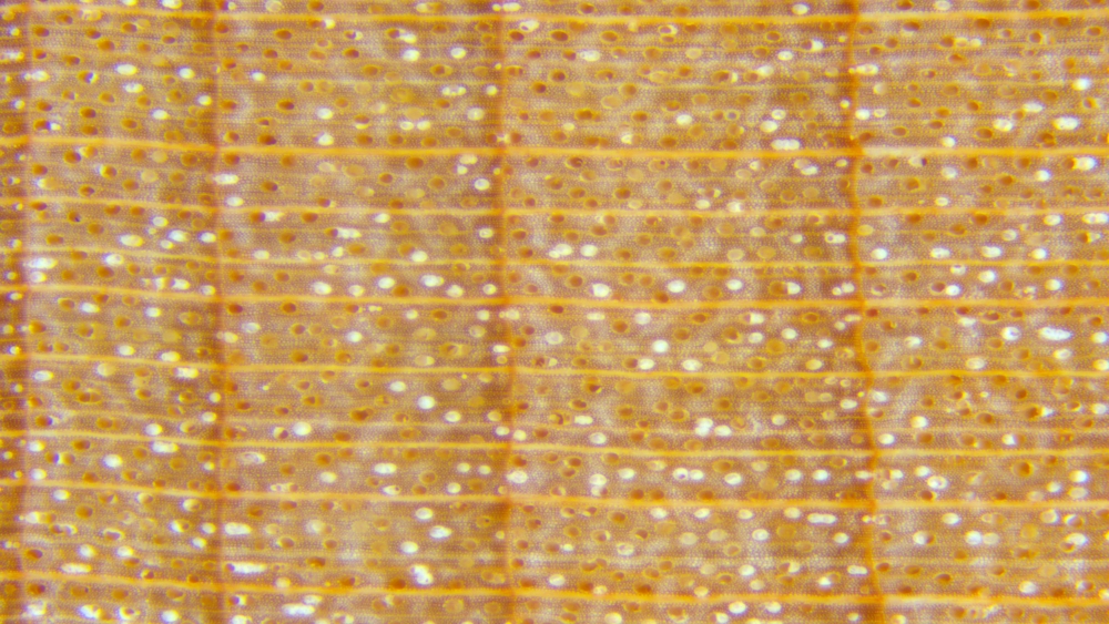 산공재(Diffuse-porous)의 균일성: 관공이 작고 고르게 분포하여 조직이 매우 균질. 이러한 균질성은 진동이 목재 내부에서 편중되지 않고 고르게 퍼져나가는 데 유리.