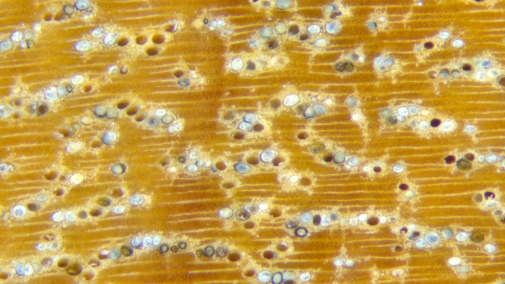 산공재. 관공은 대부분 방사복합. 집단적으로 분포하며 독특한 형태를 보이기도 함. 축방향유조직은 단접선상, 주위상. 방사조직 폭은 좁음(축방향유조직과 방사조직은 현미경으로 관찰해야 그 특성을 볼 수 있음).